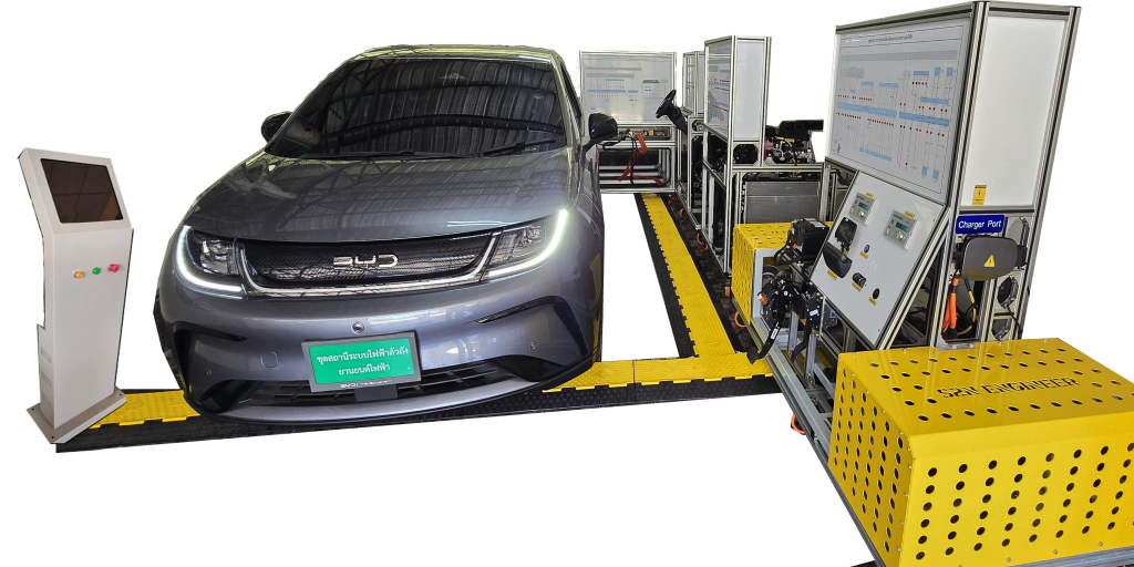 Train with real EV + simulation modules. Diagnose battery, motor drive, BMS, charger.